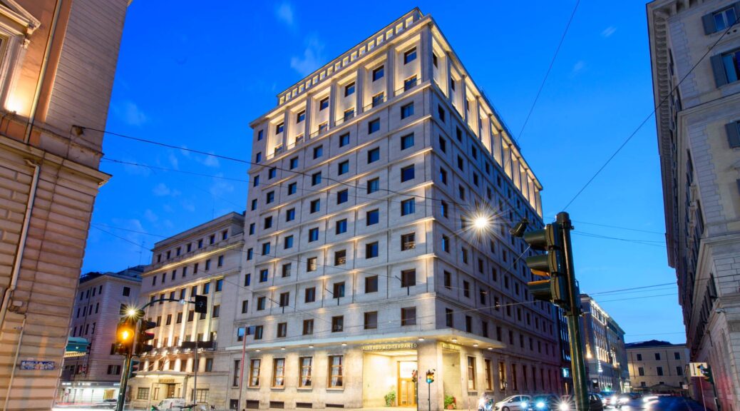 ベットーヤ・ホテル・メディテラネオ(Bettoja Hotel Mediterraneo)は、イタリア・ローマ中心部のテルミニ駅から徒歩数分に位置する老舗4つ星ホテル。1930年代に建てられたアールデコ様式の建築が特徴で、ローマ最大級の規模を誇る歴史的ホテルの一つとして知られている。館内は大理石や木材を用いた重厚でクラシカルな雰囲気が漂い、天井の高い客室はゆったりとした造り。屋上テラスからはローマ市街を一望でき、朝食会場としても人気が高い。主要観光地へのアクセスが良く、観光・ビジネスの両面で利用しやすい点も魅力で、伝統的なホスピタリティと現代的な快適さを兼ね備えている。